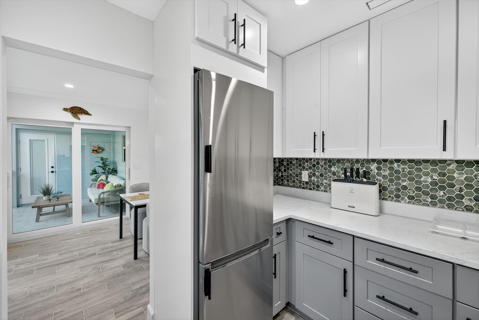 This thoughtfully designed villa-style condo offers a comfortable, private layout with two separate bedrooms, each featuring a king bed. Unique to this rental are two outdoor living spaces—a welcoming front patio and a private back lanai fully shielded from drive-by traffic. Inside, enjoy a well-equipped interior with modern smart-home lighting and climate controls, plus easy access via a covered carport. Designed for comfort, privacy, and tranquil living near the beach. No pets or events. Primary Airbnb renter must be age 30 or older. Maximum Occupancy (4 Guests Only)
