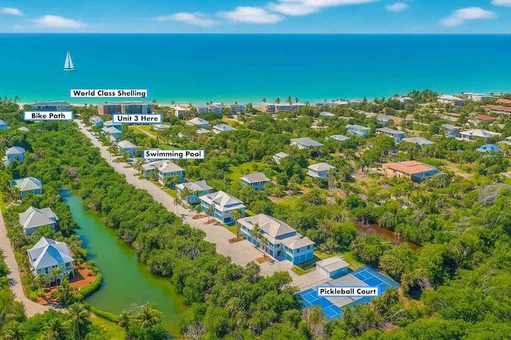 Seashells of Sanibel #3 is a new 2-bedroom,2 bath condo that is steps from the beach with a covered carport.