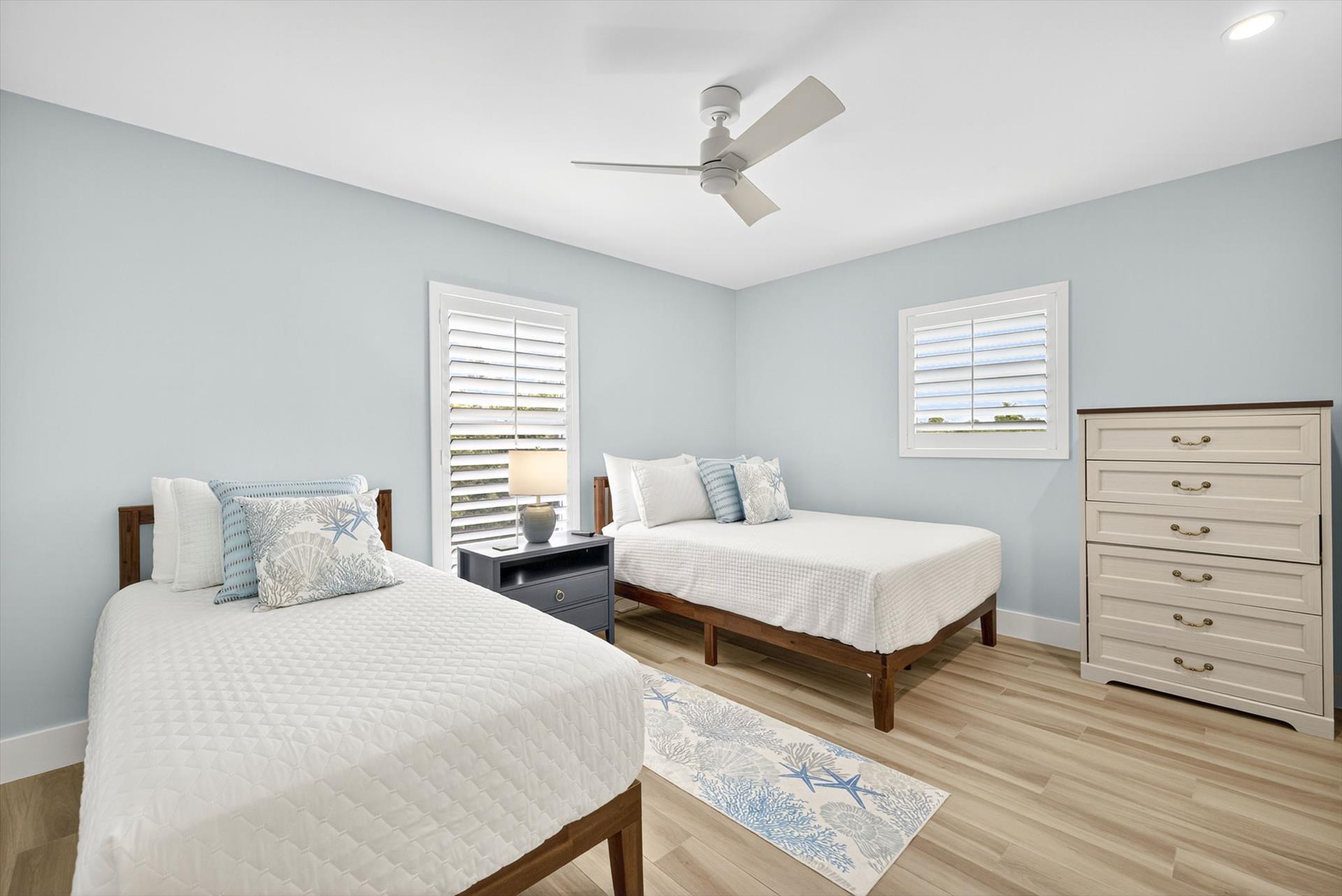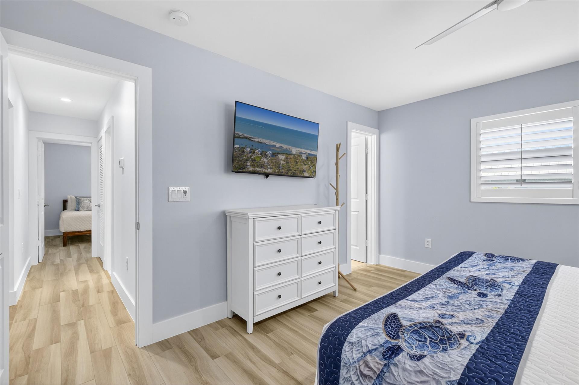 The Primary BR offers a new, quality king bed, a lg smart TV and its own bath w/walk-in shower. The 2nd BR offers both a full and a twin bed plus a second bathroom with tub/shower combo. EVERYTHING is NEW in the PRIVATE END UNIT.